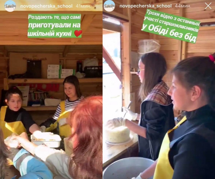 Школьники помогали проекту "Обед без бед", который занимается раздачей еды малоимущим. Отмечается, что всего в Киеве 13 таких точек, где можно бесплатно получить горячий обед, приготовленный волонтерами. В этот раз еду готовили на кухне школы, где учится Александра.