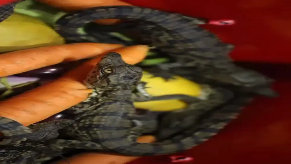 Маленьких крокодильчиков контрабандист аккуратно уложил в контейнеры, прикрыв овощами и фруктами. А также обмотал фольгой, чтобы скрыть от сканера.