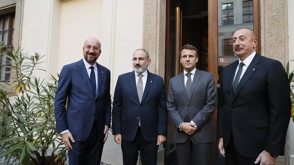 Meeting between 🇦🇿President Ilham Aliyev, 🇦🇲 Prime Minister Nikol Pashinyan, 🇪🇺 EC President Charles Michel and 🇫🇷 President Emmanuel Macron has started in #Prague.#Peace #Azerbaijan #Armenia pic.twitter.com/kdoJaWTZAT