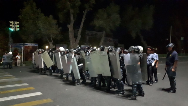 Милиция у площади Ала-Тоо в Бишкеке, где собрались сторонники Алмазбека Атамбаева. Sputnik/РИА Новости