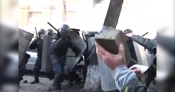 По данным местных СМИ, подразделения спецназа "Беркут" начали штурм лагеря "Евромайдана". Началось масштабное столкновение между радикалами и правоохранителями. Участники беспорядков поддерживают пламя по периметру Майдана, чтобы не дать "Беркуту" прорваться через баррикады.