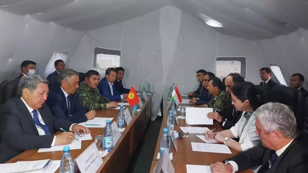 "В ходе встречи состоялся обстоятельный обмен мнениями по дальнейшим действиям, направленным на урегулирование ситуации на кыргызско-таджикской государственной границе. Главы делегаций Кыргызстана и Таджикистана выразили полное взаимопонимание о необходимости мирного урегулирования конфликта на кыргызско-таджикской государственной границе", - говорится в сообщении.