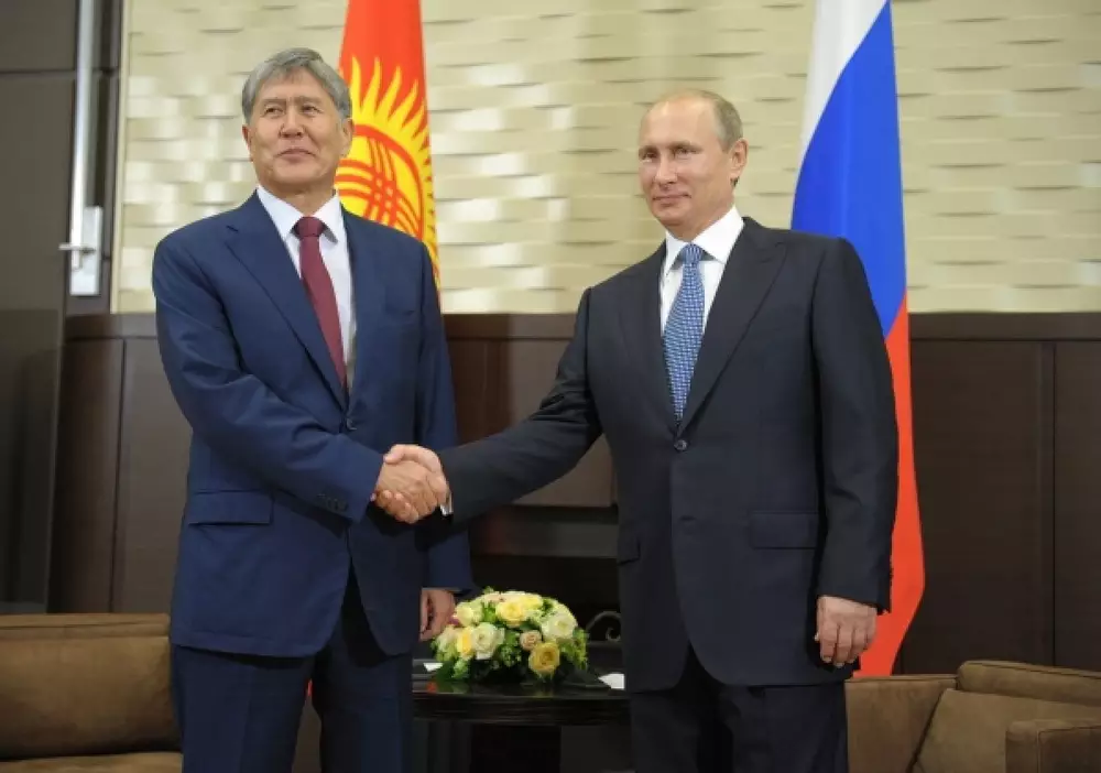 ЕАЭС: Россия выделит Кыргызстану полмиллиарда долларов Владимир Путин и Алмазбек Атамбаев во время встречи в сочинской резиденции "Бочаров ручей" 11 августа 2014 г. Фото ©РИА Новости