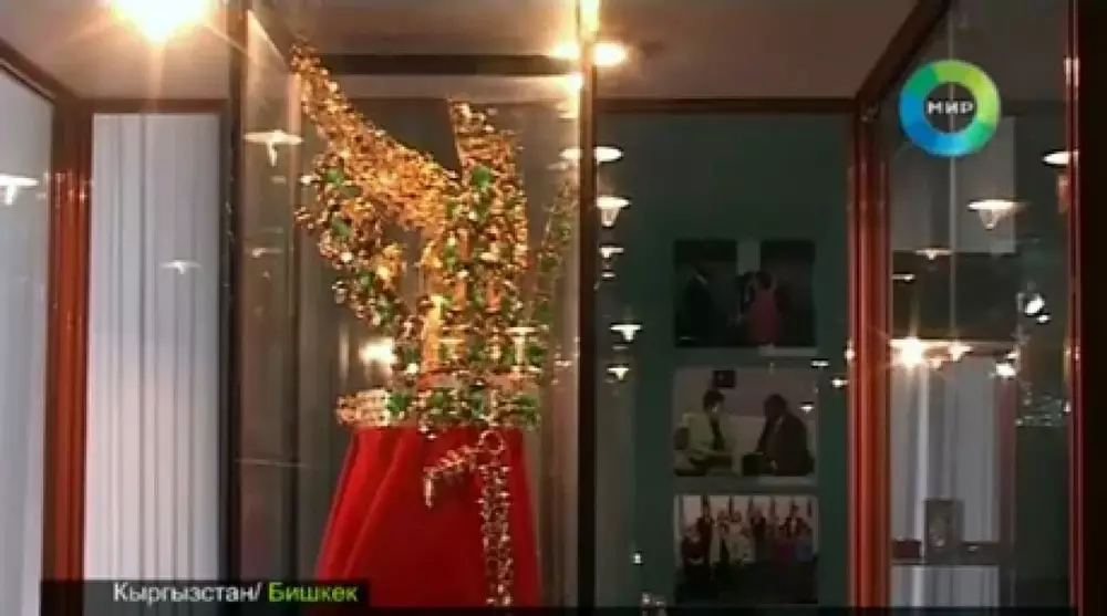 "Выставка подарков президенту Кыргызстана Розе Отунбаевой проходит в Государственном историческом музее республики в Бишкеке. (…) Одним из наиболее интересных экспонатов является корона из чистого желтого золота, которую Розе Отунбаевой преподнес ее преемник на посту главы государства - фаворит прошедших президентских выборов Алмазбек Атамбаев", - говорится в информации, опубликованной на сайте телеканала "Мир".