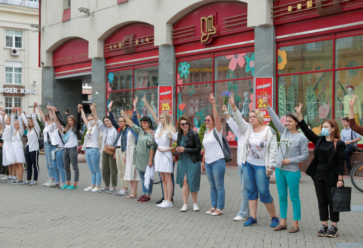 По данным Telegram-канала NEXTA Live, 250 белорусских женщин вышли в белом с цветами к Комаровке, чтобы выразить протест насильственным действиям силовиков и солидарность с пострадавшими мирными демонстрантами.