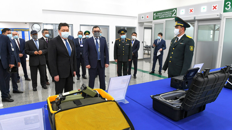 В рамках рабочей поездки премьер-министр РК посетил модернизированный пункт пропуска "Б. Конысбаева" на казахстанско-узбекской границе. После проведенной с июля 2019 года по декабрь 2020 года реконструкции площадь его застройки увеличилась в два раза, до 6 гектаров, количество полос движения - с 2 до 6, число кабин паспортного контроля - с 6 до 16, установлены современные инспекционно-досмотровые комплексы. В результате принятых мер пропускная способность пункта выросла более чем в 6 раз, с 150 до 1 тысячи автомобилей в сутки в обоих направлениях, время прохождения сокращено в два раза - с 60 до 25 минут.