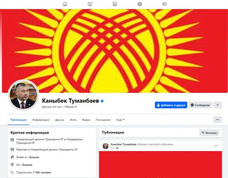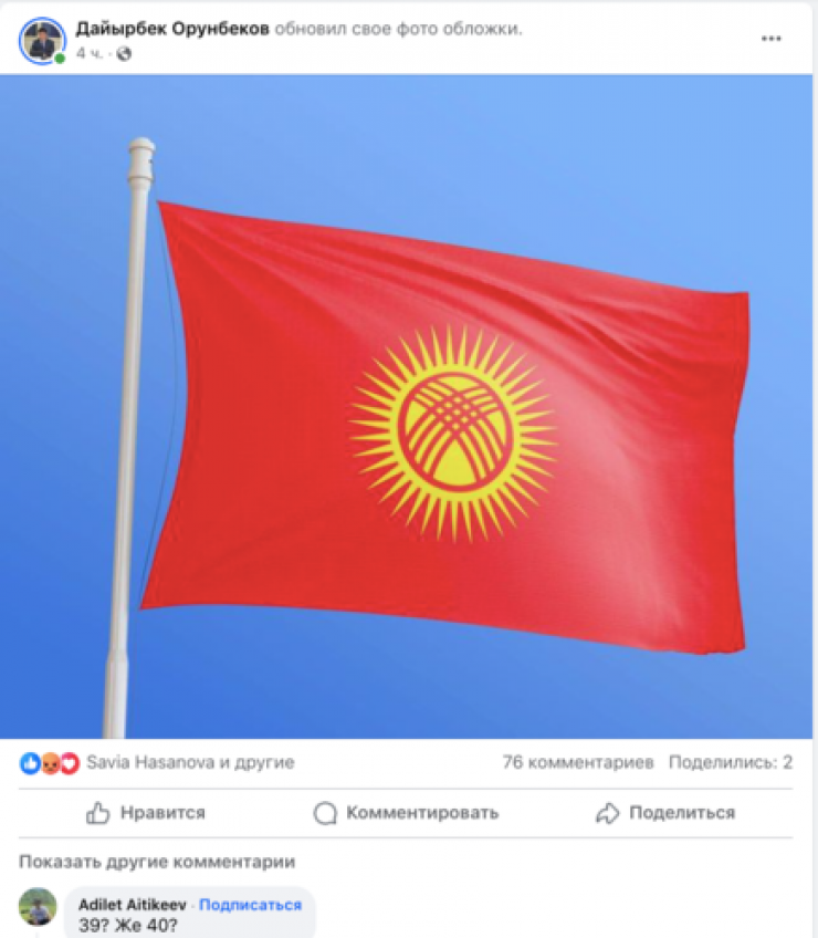 Изображение нового флага появилось и в официальном аккаунте в Facebook президента страны Садыра Жапарова.