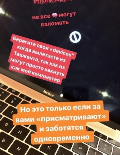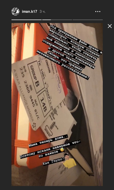 Также девушка рассказала про инцидент в аэропорту Ташкента, который помешал ей улететь из Узбекистана с первой попытки. "Под прикрытием фейк-драки в аэропорту, которую создали специально, чтобы отвлечь мое внимание и уничтожить содержимое моего компьютера и другой техники… Теперь это предмет независимого расследования!" - написала она.