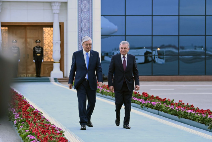 В аэропорту города Ургенча Касым-Жомарта Токаева проводил президент Узбекистана Шавкат Мирзиеев.