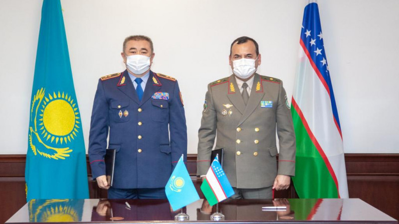 Министр внутренних дел Казахстана Ерлан Тургумбаев встретился с командующим Национальной гвардией Узбекистана Рустамом Джураевым, передает Tengrinews.kz.