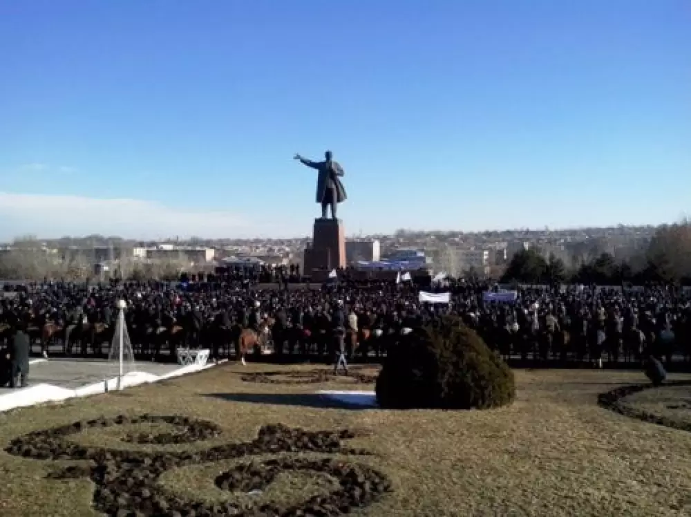 Около двух тысяч сторонников кандидата в мэры Оша Мелиса Мырзакматова и около 60 всадников митингуют на центральной площади города в поддержку своего кандидата, сообщает корреспондент Tengrinews.kz.