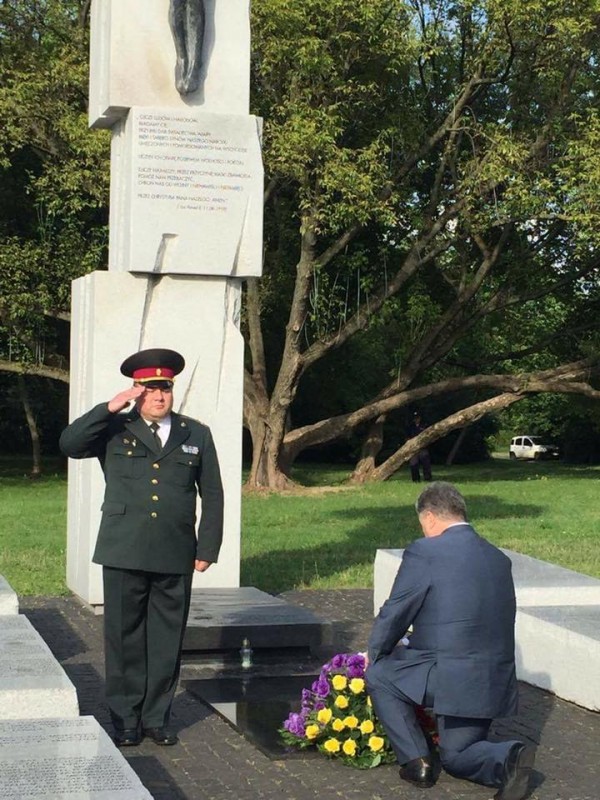 В тот день украинский лидер вместе с депутатом Верховной Рады Надеждой Савченко возложил цветы к памятнику жертвам Волынской трагедии в Варшаве.