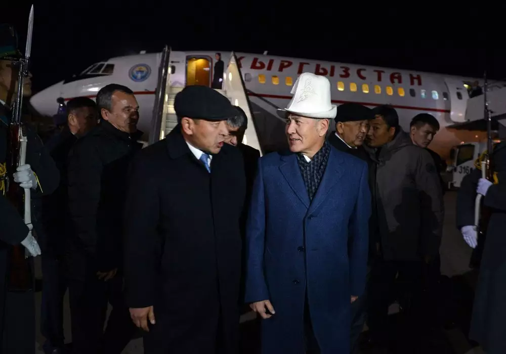 Алмазбек Атамбаев прибыл с рабочим визитом в Казахстан, сообщает корреспондент Tengrinews.kz со ссылкой на сайт президента Кыргызской Республики. Атамбаев вышел из самолета в ак калпаке - кыргызском национальном головном уборе.