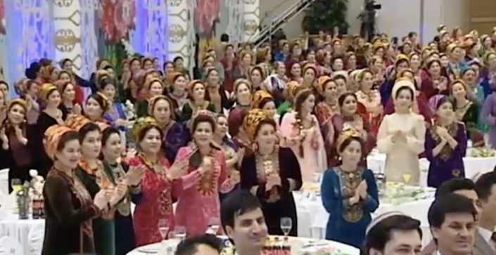"Со сцены в честь женщин блистали своими талантами популярные оперные и эстрадные певцы. Но самым прекрасным подарком для участниц торжества стал видеоролик с песнями лидера нации", - сообщило госинформагентство ТДХ.