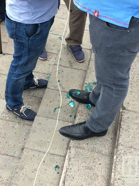 Выступление главы партии "Движение новых сил" прервал неизвестный хулиган. Нарушителя оттеснили, потом присутствующие с кулаками выгнали его, а полицейские тут же задержали. Облитый зеленкой Саакашвили пошутил, что его "приняли в партию зеленых". После чего продолжил выступление.