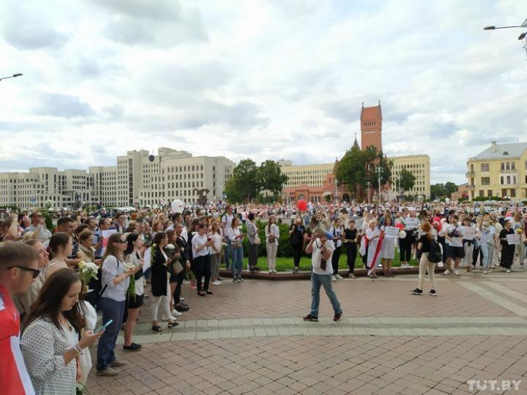 В эту минуту несколько сотен людей стоят у здания Мингорисполкома. Они требуют мэра. Среди них - работники культуры, заводов, медики, сотрудники IT-сферы и многие другие.