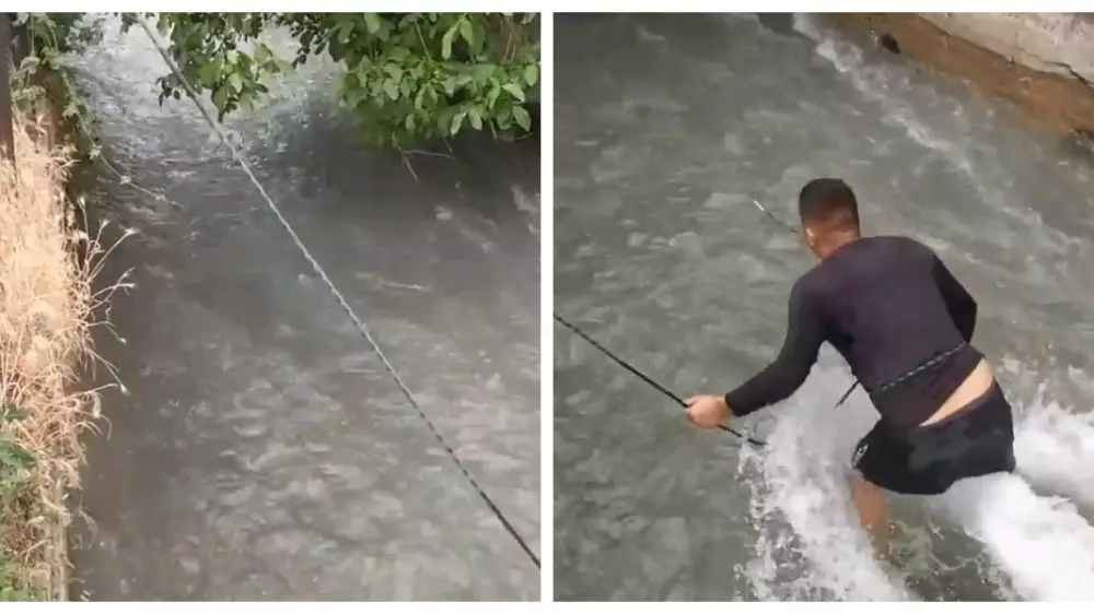 "Лови, лови ее. Ребенок упал с моста, сильное течение. Неравнодушные очевидцы успели подъехать и спасли", - говорит мужской голос за кадром.