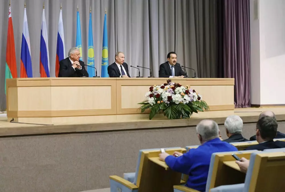Страны СНГ не готовы подписать договор о зоне свободной торговли Карим Масимов, Владимир Путин и Михаил Мясникович (справа налево). ©РИА НОВОСТИ