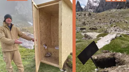 В горах Кыргызстана украли туалет, установленный предпринимателем в 2019 году, передает корреспондент Tengrinews.kz.