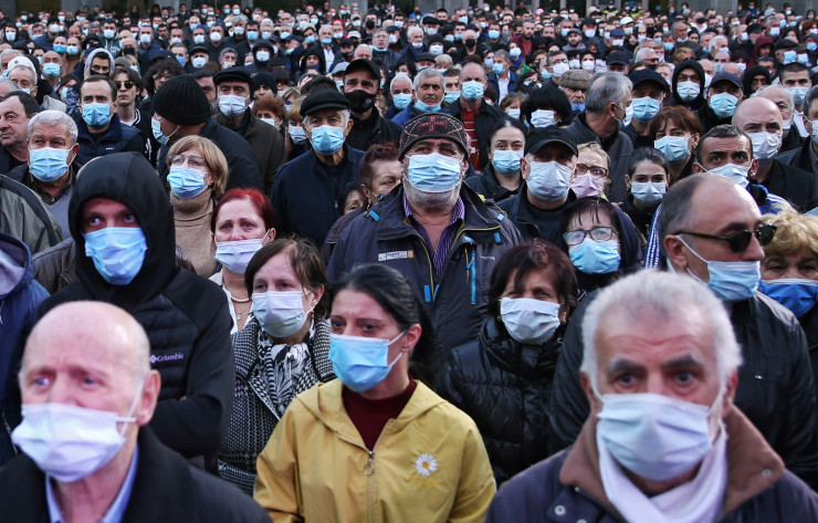 Около 3 тысяч грузинских демонстрантов провели митинг в центре Тбилиси против заключенного в тюрьму бывшего президента Михаила Саакашвили, передает Tengrinews.kz со ссылкой на Reuters