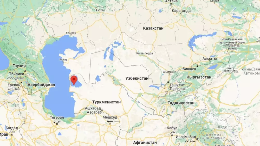 Землетрясение произошло в Каспийском море Скриншот Google Карты