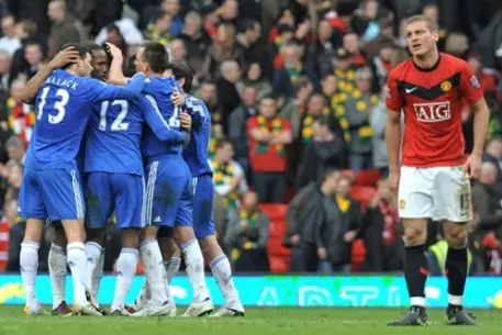 Лондонский "Челси" вышел в лидеры в английской премьер-лиге после гостевой победы над "Манчестер Юнайтед" со счетом 2:1. Лучшим игроком встречи был признан полузащитник "синих" россиянин Юрий Жирков. Таким образом за пять туров до финиша чемпионата команда Карло Анчелотти опережает манкунианцев на два очка. Из сложных соперников у "аристократов" остались выездные поединки с "Тоттенхэмом" и "Ливерпулем" в 35-м и 37-м турах соответственно. Лондонский "Арсенал" воспользовался поражением "красных дьяволов", сократив отставание от них до одного очка. Команда Арсена Венгера в очередной раз вырвала победу у соперников на исходе матча. На этот раз канониров выручил Никлас Бендтнер, забивший единственный гол в ворота "Вулверхэмптона" на 94-й минуте. "Сандерленд" прервал победную серию "Тоттенхэма", обыграв клуб Романа Павлюченко со счетом 3:1. "Манчестер Сити" нанес разгромное поражение "Бернли" на выезде - 6:1. "Ливерпуль" не сумел обыграть в гостях "Бирмингем" - 1:1, потеряв, по всей видимости, последние шансы на четвертую строчку в турнирной таблице, которая дает право участвовать в квалификации к Лиге чемпионов.