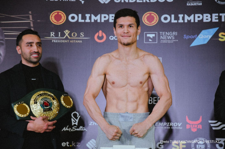 Данияр Елеусинов прошел взвешивание перед боем за титул чемпиона мира