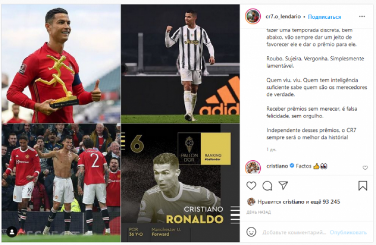 С Месси все наоборот. Он может провести скромный сезон, но они всегда найдут способ оказать ему благосклонность и вручить приз. Кража. Грязь. Стыд. Все это прискорбно. Получать незаслуженные награды - ложное счастье. Роналду всегда будет лучшим в истории", - возмутился болельщик.