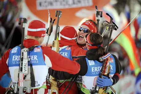На этапе Кубка мира в Контиолахти в составе скандинавской команды выступали Анн Кристин Флатланд, Тура Бергер, Халвард Ханеволд, Тарьей Бе. Норвежцам даже не помешал штрафной круг, который заработала в стрельбе из положения стоя Флатланд. Олимпийская чемпионка Ванкувера Бергер приняла эстафету десятой, однако передала ее Ханеволду уже третьей. Ветеран прошел свой этап очень уверенно, закончив его, будучи первым. На заключительном отрезке Тарьей Бе добытого преимущества уже не упустил. Немецкая команда пришла к финишу второй с отставанием в 5,4 секунды от победителей, итальянцы - третьи (отставание - 35,6 секунды).