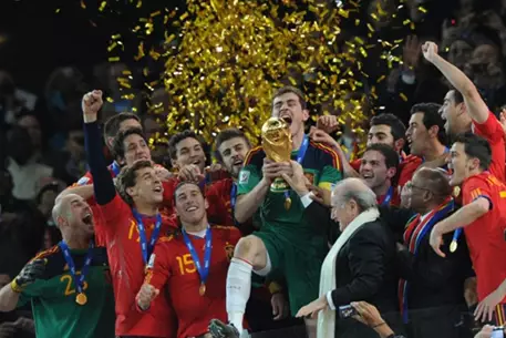 Сборная Испании впервые стала чемпионом мира по футболу, обыграв в финале ЧМ-2010 в ЮАР команду Нидерландов со счетом 1:0, сообщается на официальном сайте ФИФА. Vesti.kz вел онлайн-трансляцию этого матча. Автором победного гола стал полузащитник Андрес Иньеста, отличившийся за четыре минуты до конца второго экстра-тайма. Хавбека "Барселоны" в центре штрафной соперника нашел точной передачей Сеск Фабрегас, после чего Иньеста буквально расстрелял Мартена Стекеленбурга. Бронзовые медали на чемпионате мира второй раз подряд завоевала сборная Германии. В матче за третье место немецкие футболисты переиграли сборную Уругвая со счетом 3:2. Стоит отметить, что знаменитый осьминог Пауль предсказывал сборной Испании золотые медали чемпионата мира. Она пополнила элитный клуб обладателей Кубка мира, который включал в себя семь стран - Бразилию, Италию, Германию, Аргентину, Уругвай, Англию и Францию.