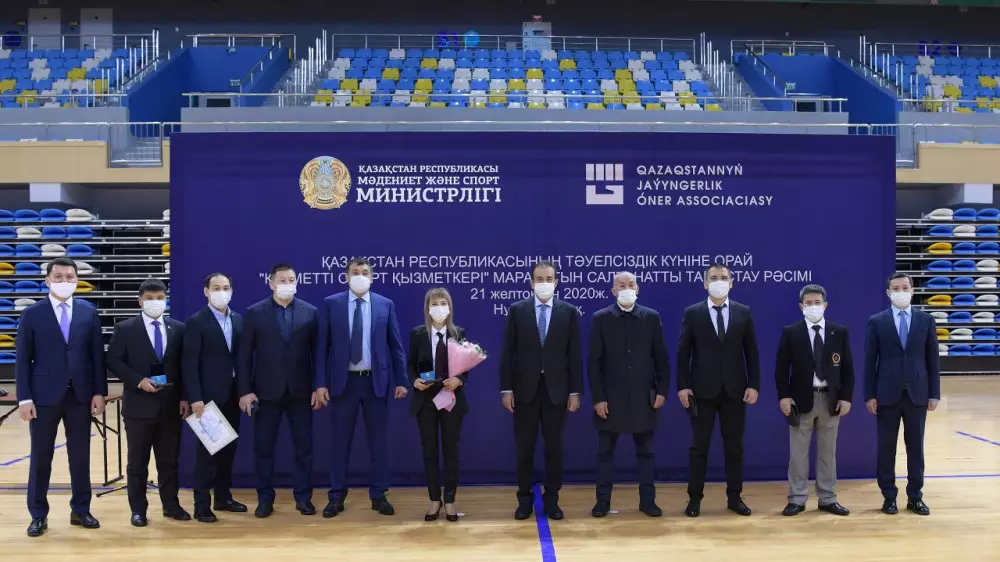 В столичном Дворце единоборств имени Жаксылыка Ушкемпирова нагрудным знаком "Заслуженный деятель спорта" были награждены казахстанские тренеры. Данное мероприятие было приурочено к Дню независимости Казахстана.