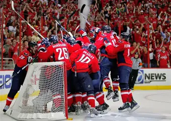 Хоккеисты "Вашингтон Кэпиталс" вышли в полуфинал Восточной конференции, переиграв в решающем седьмом матче серии плей-офф "Нью-Йорк Рейнджерс" со счетом 2:1, сообщает официальный сайт НХЛ. Победную шайбу за пять минут до конца минут третьего периода забросил российский легионер столичного клуба Сергей Федоров. Кроме него в составе "Вашингтона" удалось отличиться другому россиянину Александру Семину. За "Нью-Йорк" единственной заброшенной шайбой отметился казахстанец Николай Антропов.