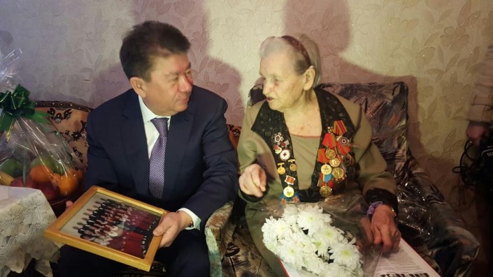 "Вы не меньше настоящих солдат воевали на фронте, помогали раненым, лечили их. Как известно, вы сдали больше 100 литров крови в качестве донора, тем самым спасли жизни многих наших отцов, внесли свой неоценимый вклад в Победу. Ваша история должна служить примером патриотизма, бесстрашия нашей  молодежи", - обратился Касымжанов к Лидии Клименко. Стоит отметить, что за боевые заслуги она награждена орденом Отечественной войны второй степени, медалью маршала Жукова, юбилейными медалями, а также является Почетным донором СССР.