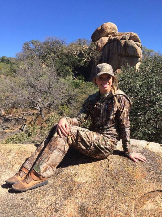 Со слов девушки, которая, кстати, является участницей группы поддержки в Техасском университете, отстреливая редких животных, она, наоборот, спасает их от вымирания.