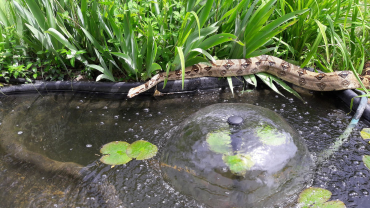 На фото – удав Кеша. Он точь-в-точь как Каа из мультика "Маугли" и живет на дачном участке водителя ТОО "Транском" Алексея Хохлова. Предки змеи обитают в Южной Америке, но Кеша родился в Алматы. Ему 4 года. И он очень любит принимать водные процедуры и солнечные ванны. Местный климат пришелся ему по душе, и он больше никуда не собирается.