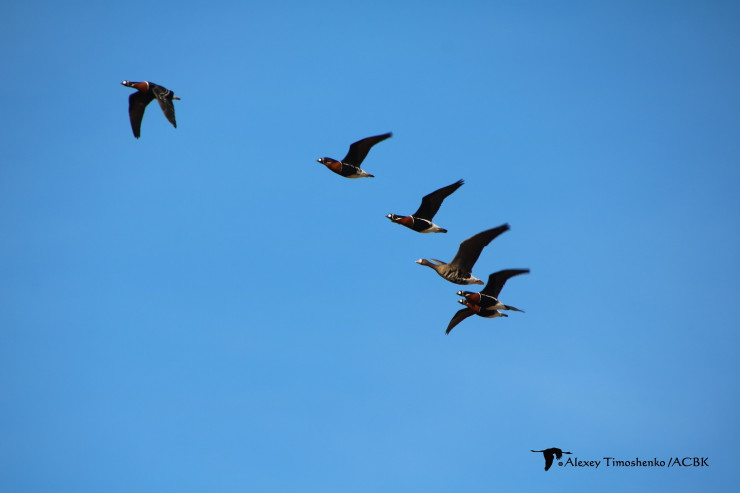На фото – миграция диких гусей казарок, пролетающих над Казахстаном и входящих в Красную книгу РК. Изучением этих птиц занимается казахстанская Ассоциация сохранения биоразнообразия при поддержке логистический компании "Транском".