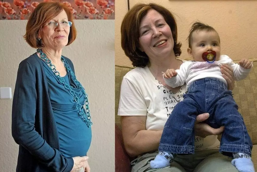 Преподаватель русского и английского языков уже является матерью 13 детей и бабушкой семи внуков. Забеременеть снова ее уговорила 9-летняя дочь, которой очень хотелось иметь маленького брата или сестру. Жительница Германии прибегла к искусственному оплодотворению. Оно увенчалось успехом после нескольких попыток.