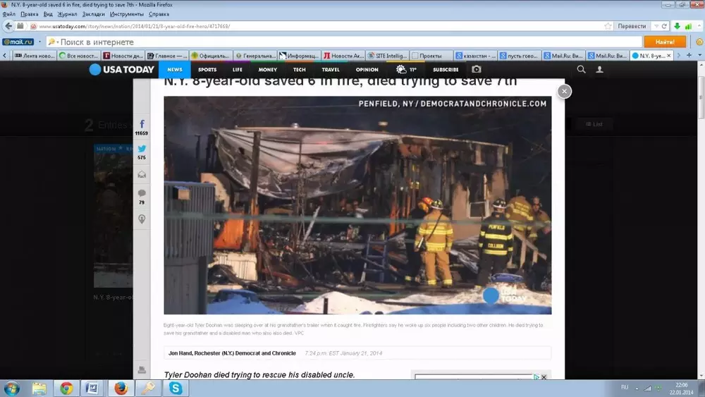 В американском городе Пенфилд (штат Нью-Йорк) восьмилетний мальчик спас из горящего трейлера шестерых человек, но погиб сам, сообщает РИА Новости со ссылкой на USA Today.