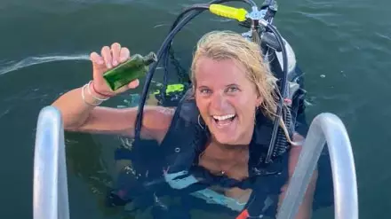 Капитан Дженнифер Даукер ныряла с аквалангом в реке Чебойган в американском штате Мичиган, чтобы помыть окна на дне лодки, и нашла бутылку с сообщением 1926 года.