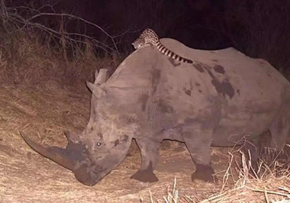 В Африке камера-ловушка засняла, как генетта оседлала носорога и катается на нем, несмотря на попытки травоядного сбросить зверька, сообщает Lenta.ru со ссылкой на National Geographic.