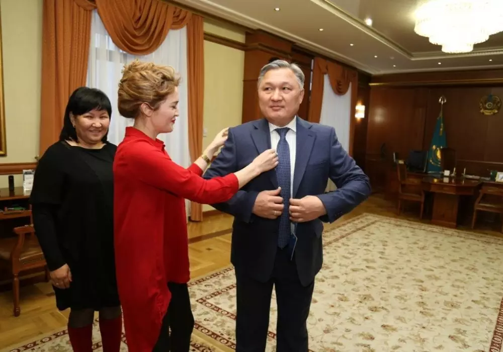 Новый костюм для Абдибекова был сшит на шымкентской фабрике "Алтын Адам".