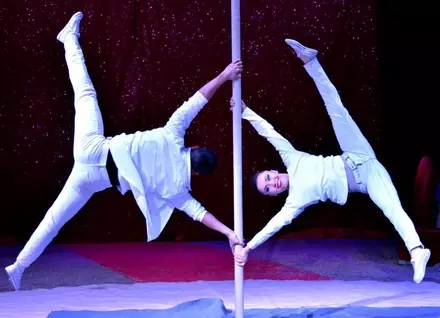 Супружеская пара продемонстрировала номер, который рассказывает историю их любви. "Мне было 16 лет, когда я пришел в цирк, тогда я был потерянный, все новым было. Растягиваюсь и смотрю - Камила лежит на барьере и болтает. Потом подходит тренер и спрашивает ее, почему не занимается, на что она ответила, что болеет. Тогда Камила мне не понравилась", - рассказал Тиканов.