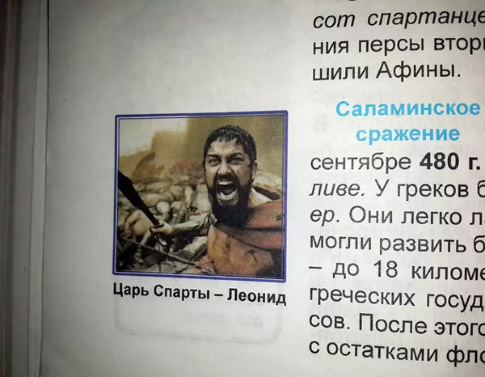 Фото голливудского актера Джерарда Батлера, сыгравшего царя Леонида в фильме "300 спартанцев", стала иллюстрацией в узбекском учебнике "История древнего мира" за шестой класс, пишет Podrobno.uz.