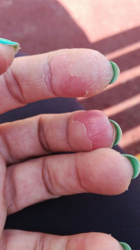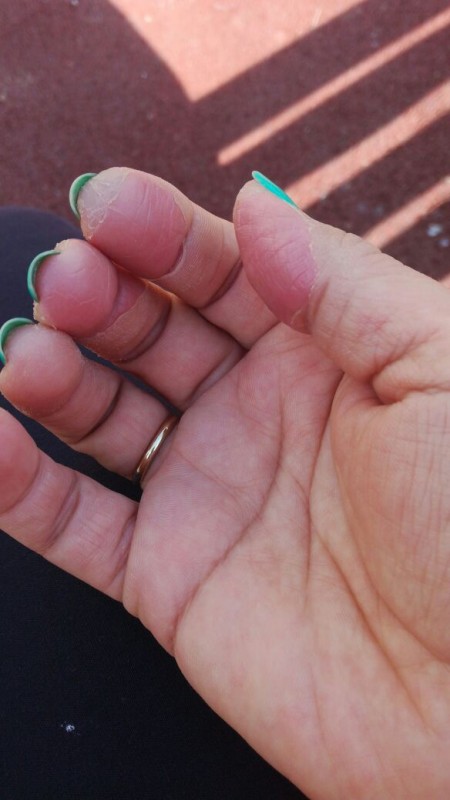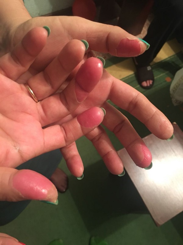 "Раньше я уже пользовалась такой же жидкостью, проблем не было. В этот раз пришлось израсходовать половину содержимого бутылька, чтобы удалить обычный лак с ногтей. Но вместо этого я начала чувствовать жжение. Хотела смыть водой и мылом - бесполезно. На утро просыпаюсь - у меня на пальцах волдыри. Ожог получила. Сейчас на коже рук трещины. Я мажу их мазью, от которой нарастает кожа", - сказала женщина.