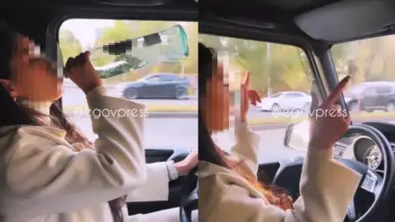 Алматинская блогерша опубликовала видео, где едет непристегнутой за рулем и пьет из бутылки, предположительно, алкогольный напиток, передает корреспондент Tengrinews.kz.