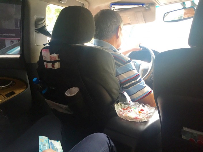 Отметим, что жительница Алматы Даша Стрекозова несколько дней назад сделала публикацию о необычном таксисте в социальной сети Facebook. Девушка рассказала, что возвращалась с мамой из торгового центра в офис. Времени вызывать такси не было, поэтому решили поймать попутку. "Переходя дорогу, я заметила мужчину небольшого роста, который махал нам рукой и спрашивал, нужно ли такси. Нужно, конечно :). Мы согласились и последовали за ним, потому что машины не было видно. Мужчина проводил нас до поворота, и пригласил сесть в серебристую Toyota 40. Дальше нас ждал сюрприз. Внутри машины был включен кондиционер. На сидении водителя позади прикреплен специальный чехол, в котором находилась газированная, негазированная вода, сухие и влажные салфетки и журналы. На подлокотнике водителя стояла тарелка с конфетами. Мама сделала комплимент водителю о том, как приятно ехать в его машине, на что Берик (так, оказывается, звали таксиста), ответил: "Да, хочу удивлять людей на старости лет. Делаю, что могу"... Мы переглянулись. В груди немного сжалось от ощущения, как сильно, даже понемногу, мы можем менять мир, просто если начнем делать то хорошее, что можем. И дело не в том, чтобы каждому создавать адронный коллайдер (только что прогуглила как он правильно пишется), открывать сеть Starbucks или запускать Facebook. Это тоже, конечно, важно. При этом не нужно ждать особого случая или вдохновения, чтобы создавать перемены в мире", - написала она, приложив телефон водителя (орфография и стиль автора сохранены). За несколько дней пост девушки набрал более пяти тысяч перепостов.