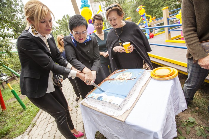 Эта инициатива стала частью проекта "Волшебные сказки домашнего очага", в рамках которого артисты и общественные деятели Казахстана выпустили сборник детских сказок. Первая площадка была установлена на территории Центра комплексной реабилитации "Кенес".