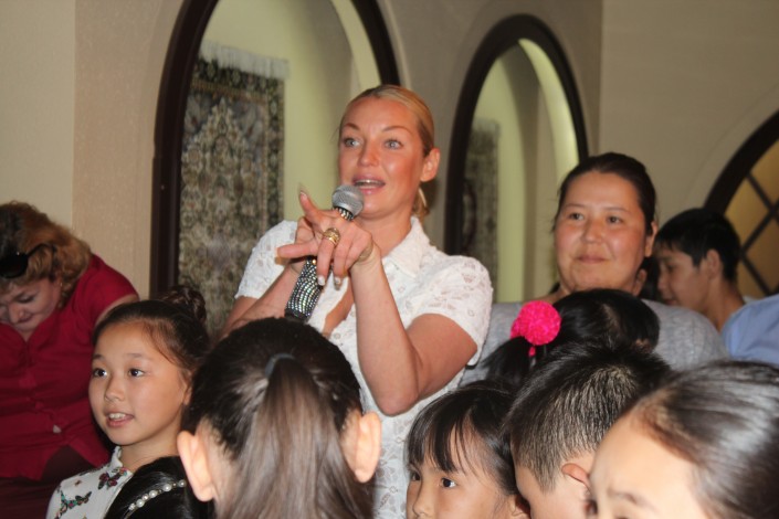 "Я решила сделать завтра свой концерт, на который все приглашены бесплатно. В концерте будут участвовать дети, молодежные коллективы Казахстана. Это будет происходить во Дворце школьников Астаны. Поэтому, кто располагает временем в три часа дня, я вас очень жду. Это будет шоу, которое будет длиться 1 час 20 минут. Я даже больше скажу. У меня к вам предложение. Всегда в концерте есть финал. Все ребята участвующие, и не участвующие, если вы придете, все выйдете на сцену, я буду петь детскую песню, а вы будете просто мне помогать с танцем. Все, что нужно делать, я вам скажу буквально за секунду до этого момента. Вы располагаете временем? Придете? В три часа приходите, ребята. Я вам предлагаю стать участниками, а взрослым на это, соответственно, посмотреть. Это будет нереально интересная история, честно. Согласны?" - спросила Волочкова у участников мероприятия. Все дети и родители ответили утвердительно и поспешили сделать с артисткой памятные снимки.