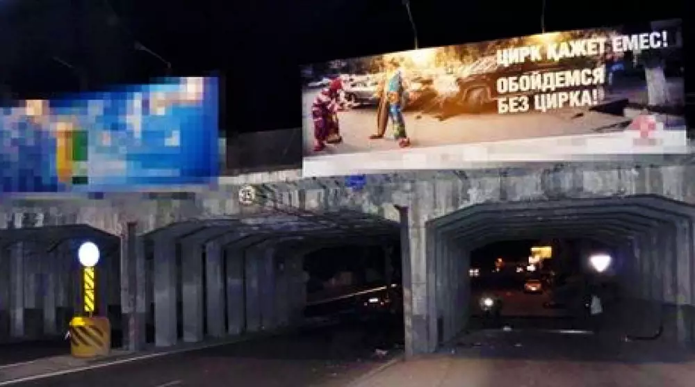 В Казахстане одна из страховых компаний начала размещать билборды со слоганом "Обойдемся без цирка". Как пояснили в страховой компании, этот слоган относился к происходящим на дороге инцидентам, которые напоминают шоу. Однако один из билбордов был установлен недалеко от здания Казахского государственного цирка в Алматы.