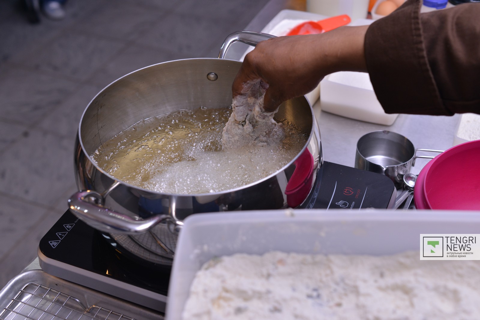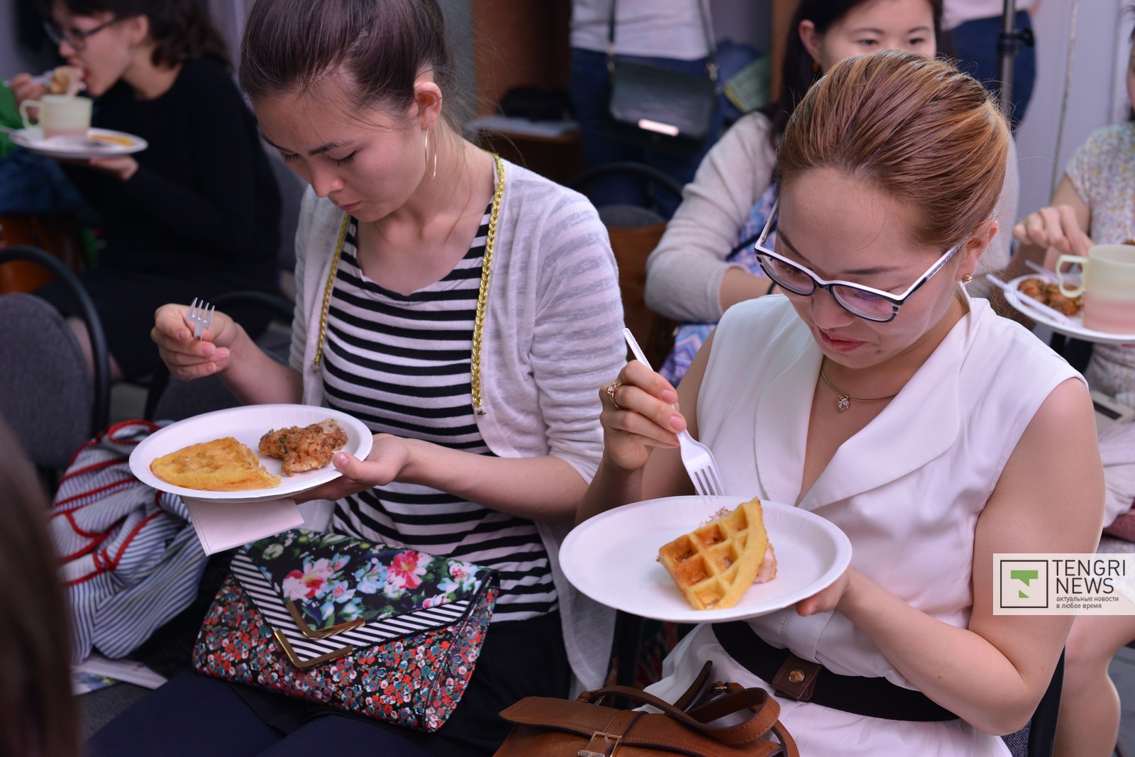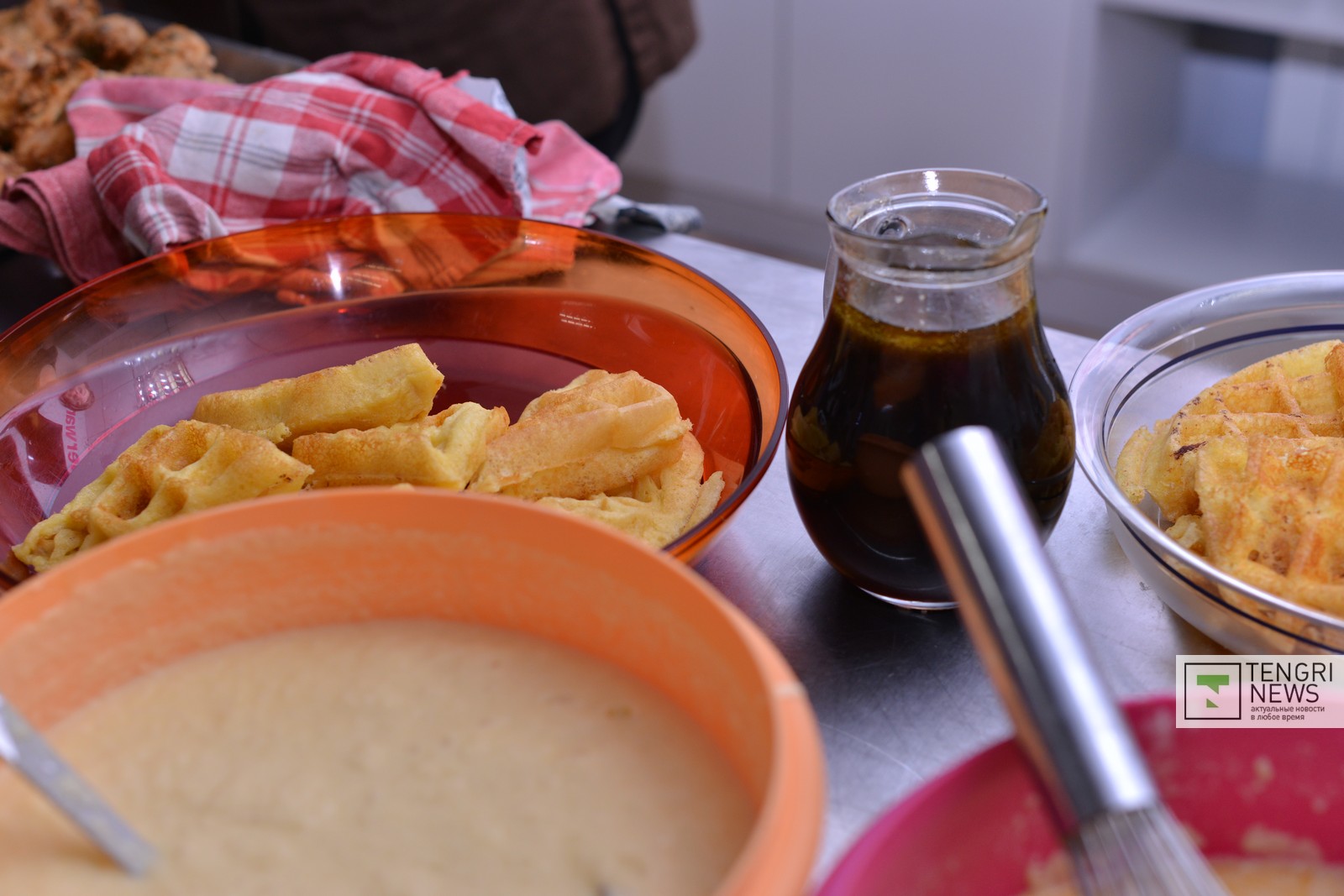 По мнению многих, в США едят только фаст-фуд и готовят полуфабрикаты. Это мнение пыталась развеять шеф-повар ресторана Brown sugar kitchen из Калифорнии Таня Холланд. Сегодня она готовила астанчанам жареную курицу, маринованную в кефире, и вафли из кукурузной муки с яблочным сиропом. Именно эти блюда пользуются особой популярностью в ее ресторане. Она добавила, что обычно эти два блюда не употребляются вместе. Сегодняшний мастер-класс - исключение.